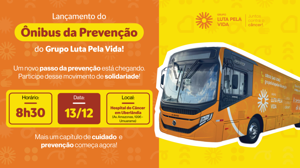 Reforçando um compromisso histórico com prevenção contra o câncer e a democratização do acesso à saúde, o Grupo Luta Pela Vida (GLPV) realizará o lançamento oficial do “Ônibus da Prevenção” no próximo dia 13 de dezembro, às 8h30, em frente à portaria do Hospital do Câncer em Uberlândia.