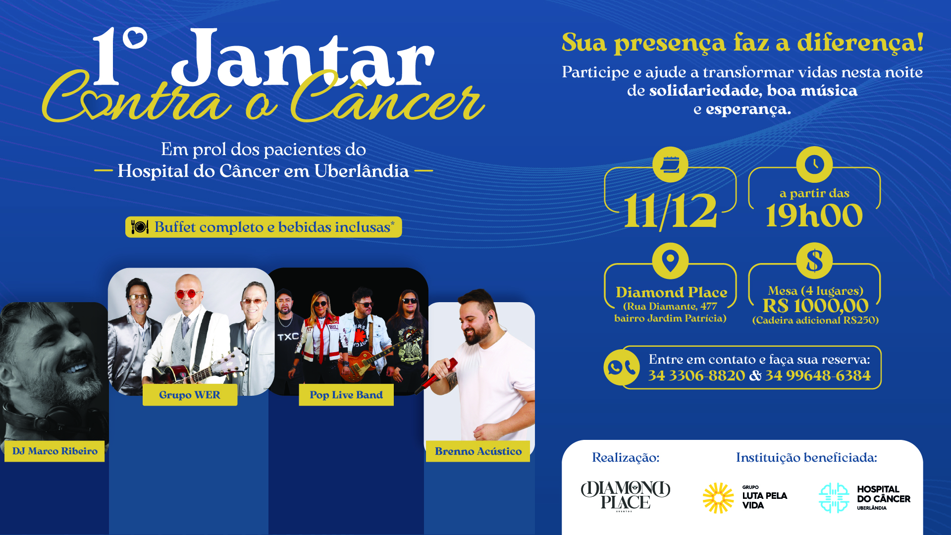 Prepare-se! O 1º Jantar Contra o Câncer é AMANHÃ, dia 11 de dezembro, e você é a peça-chave nesta grande corrente de solidariedade! A partir das 19h, o Diamond Place será o palco de uma noite inesquecível e especial.