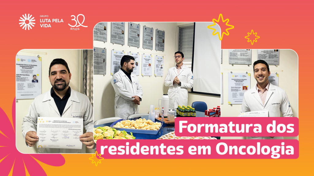 A conclusão de um ciclo tão importante merece ser celebrada. No dia 26 de fevereiro, o Grupo Luta Pela Vida (GLPV) e a unidade de oncologia do HC-UFU/Ebserh realizaram a cerimônia de formatura da residência dos médicos Dr. Carlos Henrique Matias de Deus e Dr. Gustavo Ribeiro Lopes.