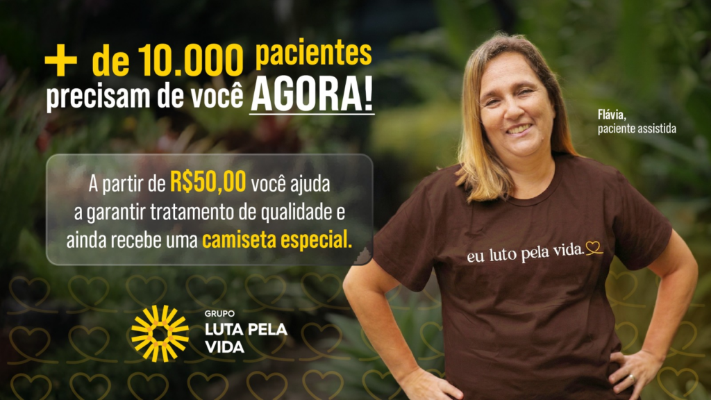 Como parte das ações da campanha, o Grupo apresenta uma nova camiseta exclusiva para reforçar a importância do apoio da sociedade. Na cor marrom e com a frase “Eu luto pela vida”, a peça pode ser adquirida por meio de uma doação extra de R$ 50,00. Toda a renda é integralmente revertida para as necessidades e melhorias do Hospital do Câncer.